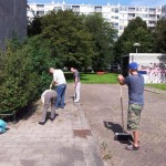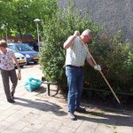 - Met speciale knijpers en bezems zorgen we ervoor dat het gebied rondom de flat er weer netjes uitziet.